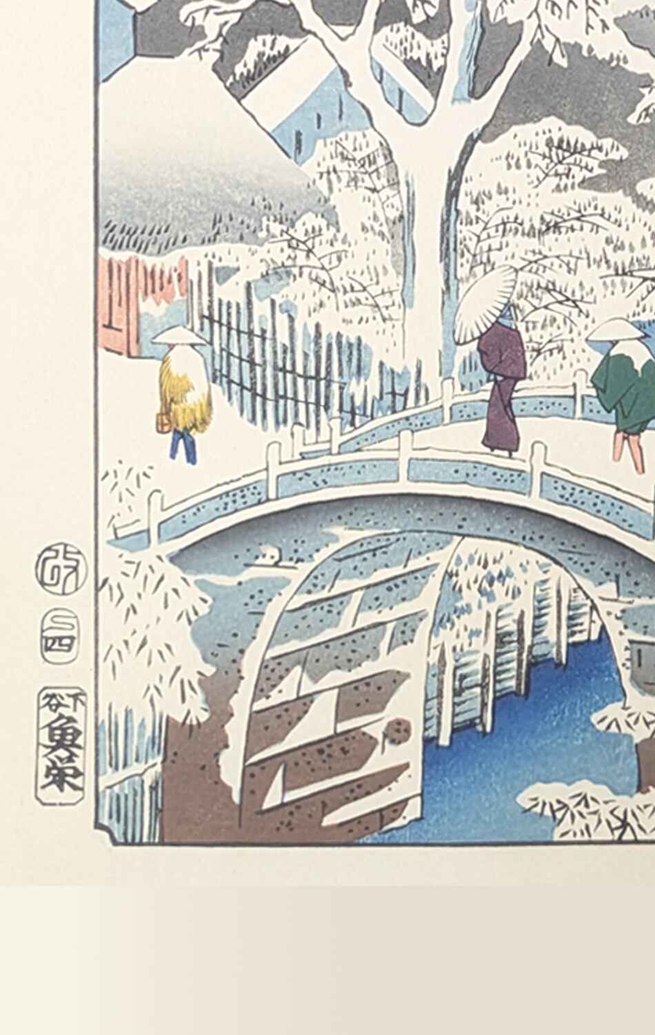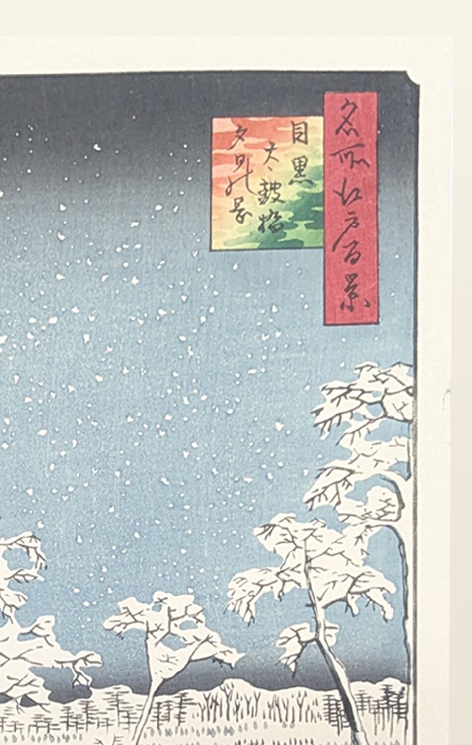 木版画 歌川広重 名所江戸百景 目黒太鼓橋夕日の岡