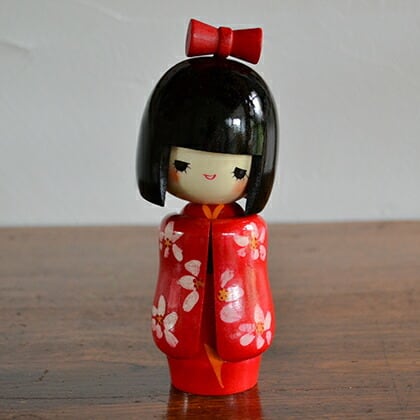群馬県にあるコケシ屋さん「宇三郎」の、『女の子』という作品です。光沢のある細身の形をした可愛いコケシ人形です。